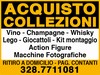 | ACQUISTO COLLEZIONI. Vino - Champagne - Whisky - Lego - Giocattoli - Kit montaggio - Action Figure - Macchine Fotografiche. RITIRO A DOMICILIO. PAGAMENTO CONTANTI. Tel. 328.7711081 |