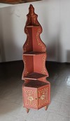 Angoliera in stile veneziano, legno laccato rosso con decorazioni dipinte a mano, alta 180, ritiro e trasporto a carico dell'acquirente
