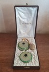 Antica parure” LE PAVOT “de Mau Riel in vetro da toeletta primi '900 formata da porta profumo e porta cipria in custodia originale .Vendo in € 138.Gradito contatto telefonico