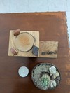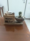 Porta candela/led in legno,con Pianta grassa nel cocco.