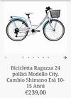 Vendo bicicletta da ragazza city bike usata ma tenuta benissimo. Pagata 240 vendo a 120