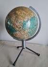 Globo Fisico e Politico Laboratorio Italiano Mappamondi Torino vintage anni 50’. con spicchi serigrafati, arco meridiano graduato in alluminio supporto in metallo e alluminio Altezza cm .26, diametro sfera cm. 15. Scala 1: 50.000.000. Venso € 95