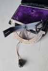 Antico strumento goniometro semicircolare in ottone.Si tratta di uno strumento dotato di traguardi, e filo a piombo.Supporto non originale . Custodia originale con struttura in legno rivestita di velluto, dimensioni cm.8 x cm5,5 x cm. 2 .Vendo € 85